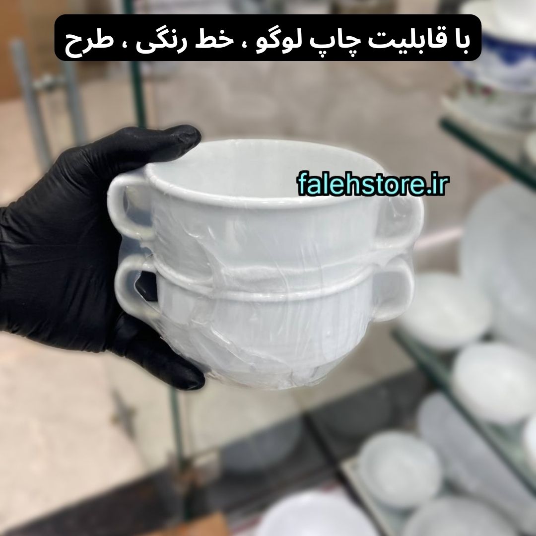 پیاله دسته دار سفید چینی زرین 10 سانت طرح هتلی 2 عددی