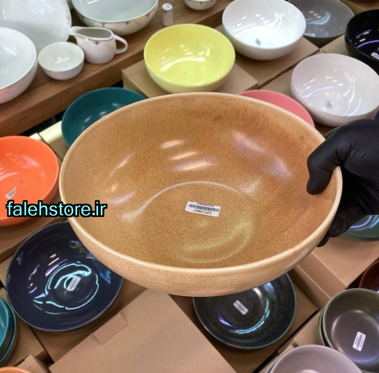 کاسه رنگی بزرگ که برای سرو انواع سالاد برای چند نفر در نظر گرفته شده است را برای شما در این صفحه قرار دادم ، از گفتن تعداد نفرات برای سرو این کاسه که به سالاد شهرت دارد و این اسم چندان مناسب آن نیست خودداری میکنم ، این کاسه کرم رنگ که از نقاط گرانیتی بهم ریخته روی خود بهره میبرد و از جنس استون ور که نسل جدید ظروف سرامیکی است بهره میبرد بسته به بخور بودن یا رژیمی بودن مهمان ها متفاوت است ، من در خصوصیات ابعاد این محصول را قرار دادم و در اینجا دوباره ابعاد را بیان میکنم : عمق 9 سانت دهانه 23 سانت تقریبی .