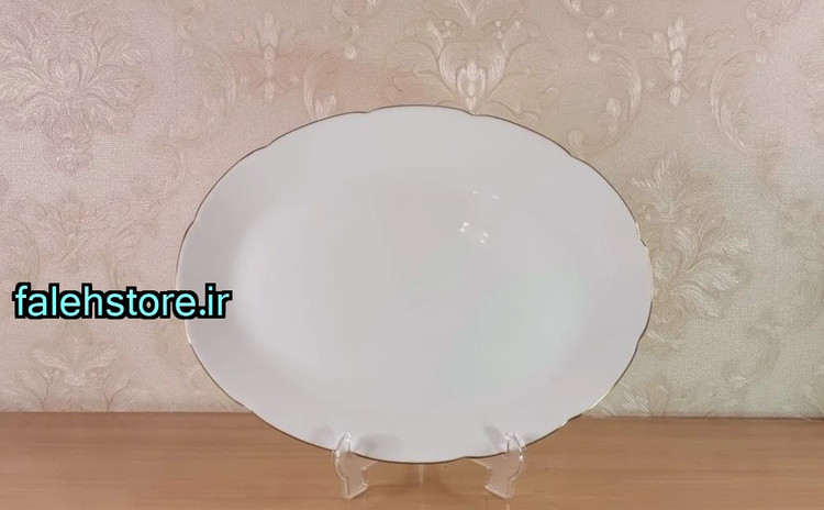 یک دیس بسیار شکیل و شیک که با لبه های نیلوفری شکل که بر روی آنها خطوط بسیار زیبای طلایی کار شده میتواند یک میز سرو و شام بسیار شیک و مجلل را برای شما خلق کند ، ترکیب رنگ طلایی با سفید هارمونی بسیار جذابی را خلق میکند که تقریبا توانایی ست شدن با هر نوع دیزاینی را دارد ، و میتواند جلوه بسیار متفاوتی را به میزهای شما ببخشد.