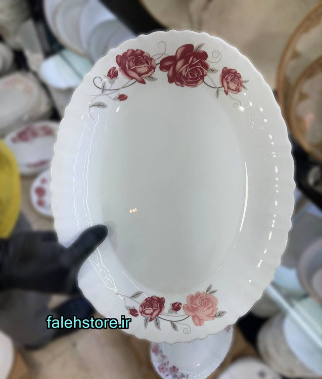 طرح و گل های به کار رفته در این دیس اپال پررنگ و لعاب و جون دار هستند ، که لبه های کنگره شکل آن خبر از میز سرو شام گرم و صمیمانه میدهند .