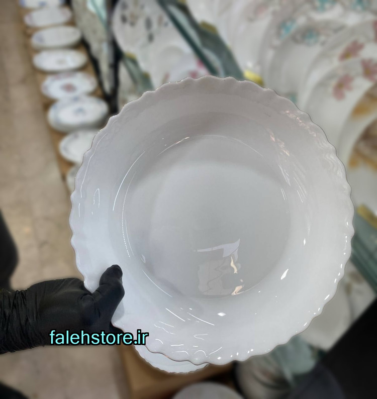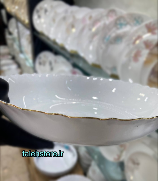 من یک عدد از این دیس آرکوپال سفید دور طلا را برای شما در یک بسته بندی بسیار مناسب برای ارسال قرار دادم و در تصویر سعی کردم تا به خوبی لبه های طلایی این آرکوپال ایرانی را به شما نشان دهم.