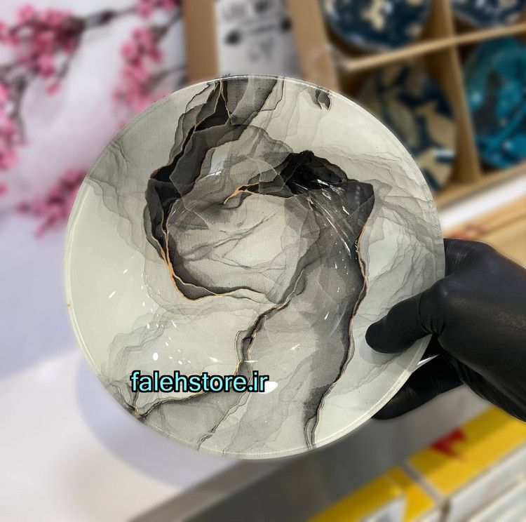 در این محصول بشقاب خورش خوری از طرح پرفروش و بسیار جذاب نانسی مشکی آرکوفام را برای شما قرار دادم ، بشقاب شیشه ای طرح سنگ مشکی برای میزهای سرو که از جنس سنگ که دارای رگه ها و هاله های مشکی هستند گزینه بسیار مناسبی است و جلوه لوکس و لاکچری به میز سرو شما میبخشد.