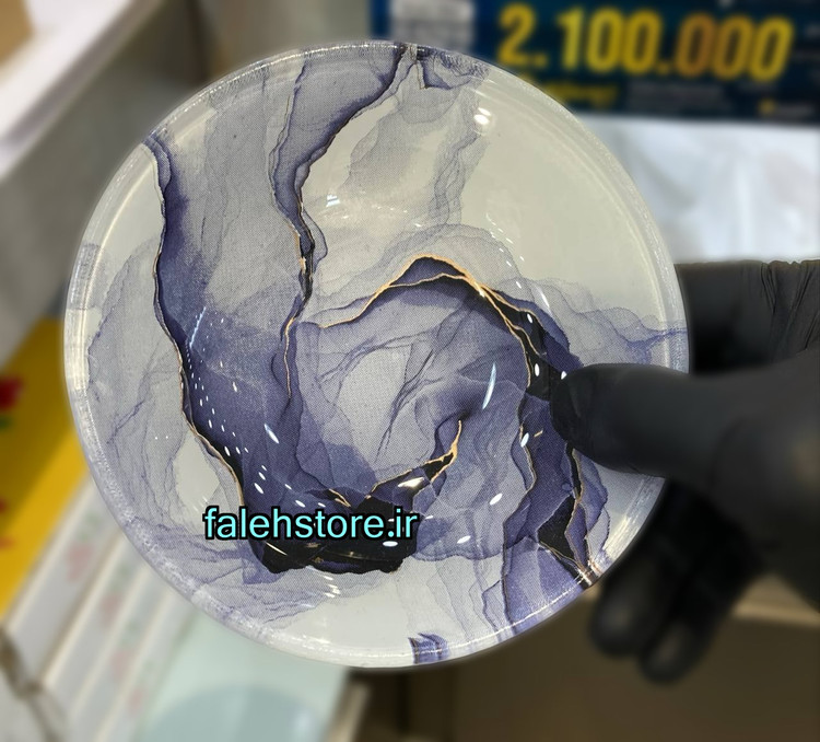 پیاله آرکوفام که در این تصویر برای شما قرار دادم دارای پیش دستی و دیس و پلوخوری ترکیبی است ، که من در سایت فله استور برای شما قرار دادم ، رنگ به کار رفته در هاله ها و رگه های این پیاله بنفش است و در اقلام پلوخوری و دیس قسمت زیادی از ظروف شیشه ای را پوشش داده است ، که یک ترکیب با هارمونی بسیار زیبا را برای شما خلق کرده است و میتواند برای میزهای سرو و پذیرایی لوکس و مدرن بسیار مناسب باشد و یک میز بسیار چشم نواز را برای شما خلق کندو