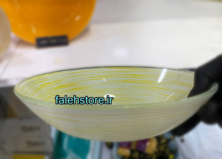 بشقاب خورش خوری شیشه ای که در این صفحه برای شما قرار دادم از دو رنگ زرد و سفید تشکیل شده که یک ترکیب نسبتا جدید و جذاب را خلق کرده است ، عمق مناسب این بشقاب شیشه خوری برای سرو آنواع خورشت ، قیمه ، قرمه ، کرفس و مواد خوراکی آبکی بسیار مناسب و کافی است ، این بشقاب شیشه ای در دسته محصولات فانتزی قرار میگیرد ، شکل هندسی مدرن و فانتزی و رنگ شاد این محصول برای یک میز ناهار خوری رنگی که در این طیف رنگی باشد گزینه بسیار مناسبی است.