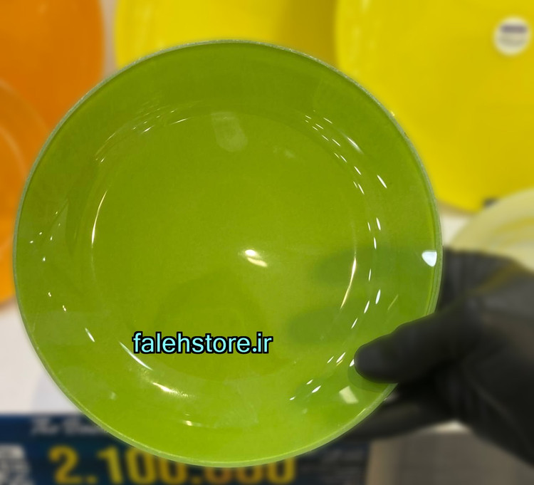 رنگ سبز براق و یکدست این بشقاب، جلوهای فانتزی و هماهنگ با سایر ظروف رنگی ایجاد میکند و ترکیب آن با رنگهای زرد یا نارنجی، یک چیدمان شاد و دلنشین میسازد.