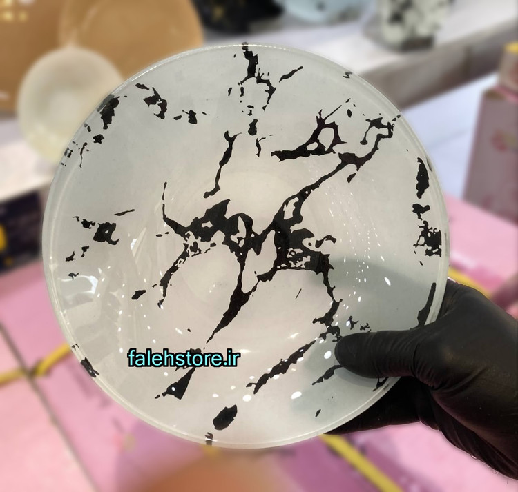 🤍 بشقاب شیشهای طرح ماربل مشکی خورشخوری آرکوفام
