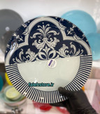 در طراحی این بشقاب از رنگ سورمهای براق در کنار سفید صدفی استفاده شده که ترکیبی خاص و چشمنواز را خلق کرده است.