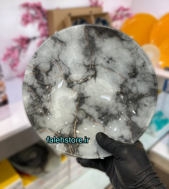 ⚫ بشقاب شیشهای طرح دار مرمریت طوسی
