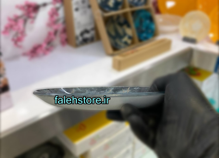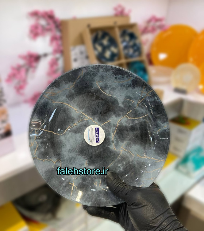 این بشقاب زیبا با طرح سنگ مرمریت و ترکیب رنگهای طوسی تیره، نقرهای و رگههای طلایی ظریف جلوهای لوکس و چشمنواز به میز پذیرایی شما میدهد و میتواند با هر نوع دکوراسیون، از مدرن تا کلاسیک، هماهنگ شود.