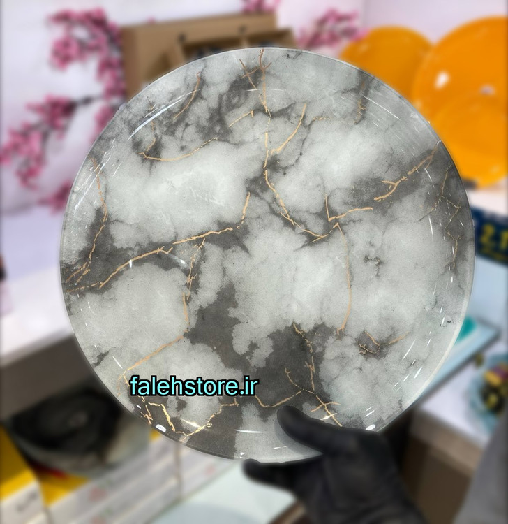 این دیس با طراحی مرمریت طوسی و رگههای طلایی براق، جلوهای بسیار چشمگیر و مدرن به میز شام یا پذیرایی شما میبخشد و در هر دکوراسیونی — از کلاسیک تا مینیمال — بهراحتی خودنمایی میکند.